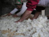 | <お店紹介> 当店はこうじ屋です。 農家が自分で味噌を作るためのこうじを作り続けてきました。 ![]() ![]() ![]() 三日三晩手塩にかけて育む手こうじは出荷時にはふんわりと香ります。 そんな糀を市販の味噌の倍以上入れてあります。 そして蔵の杉の樽で一年以上寝かせた昔ながらの製法です。 ![]() 日本が世界一の長寿国になった一因とも云われる味噌、 中でもこうじ菌は国菌と呼ばれ日本では有用微生物の王者です。 残念ながらキムチや納豆菌に押され影が薄くなっていますが、 味噌が本来の効能を発揮する様に仕込み食されれば、 抗がん効果は既に実証済みです。 ![]() ![]() 当店ではその効果を損なう事ない様、酒精を入れてありません。 こうじ麹菌が袋詰されても活きています。 そのため極力量り売りを原則としております。 ![]() ![]() 味噌汁は、かつて御御御付けとまで言われました。 その味と伝統を守り続けたいです。 |
